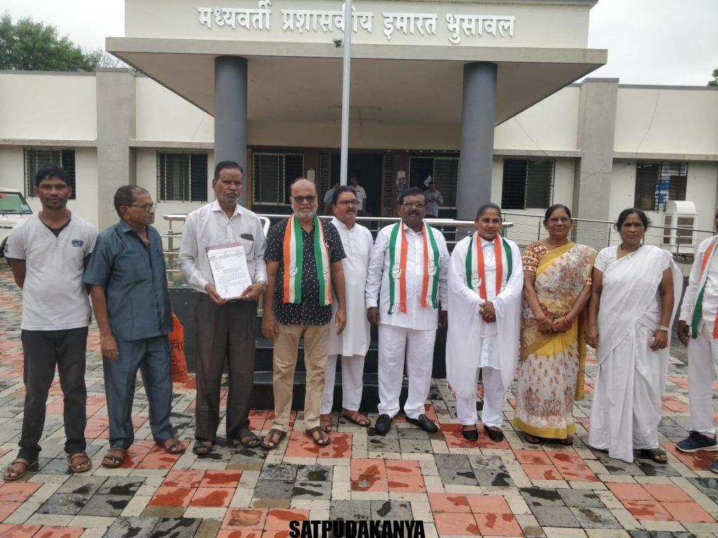 निवेदन देताना शहराध्यक्ष रवींद्र निकम, महाराष्ट्र प्रदेश काँग्रेस कमेटी अल्पसंख्यांक विभागाचे प्रदेश उपाध्यक्ष मो.मुनव्वर खान, अल्पसंख्यांक शहराध्यक्ष सलीम गवळी, महिला शहराध्यक्ष यास्मीन बानो, असगर भाई, सागर वानखेडे, सुजाता सपकाळे, वंदना चव्हाण, अनवर तडवी, अमीन तडवी, जफर पिंजारी व पदाधिकारी व कार्यकरते उपस्थित होते.