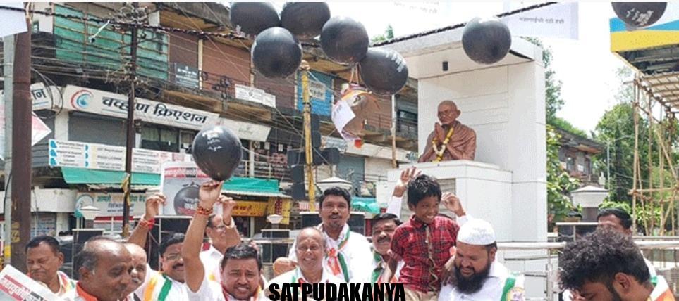 भुसावळ – राष्ट्रवादी काँग्रेस शरद पवार गटाने मंगळवार, 27 रोजी शहरातील यावल रोडवरील महात्मा गांधी पुतळ्यासमोर महायुती सरकारच्या विरोधात सरकारने केलेल्या फसव्या योजनांच्या विरोधात निदर्शन आंदोलन केले. यावेळी काळे फुगे बांधून महायुती सरकारच्या भ्रष्टाचाराच्या विरोधातील दहिहंडी बांधण्यात आली. महायुती सरकारच्या काळ्या कारनाम्यांचे माहितीपत्रक वितरण करण्यात आले.
