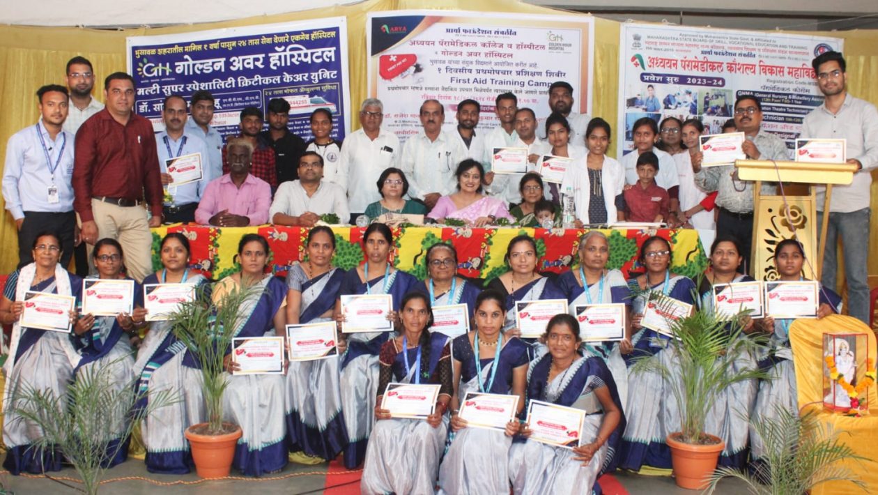येथे अध्ययन पॅरामेडिकल कॉलेज व हॉस्पिटल तर्फे प्रथमोपचार प्रशिक्षण शिबिराचे आयोजन करण्यात आले,