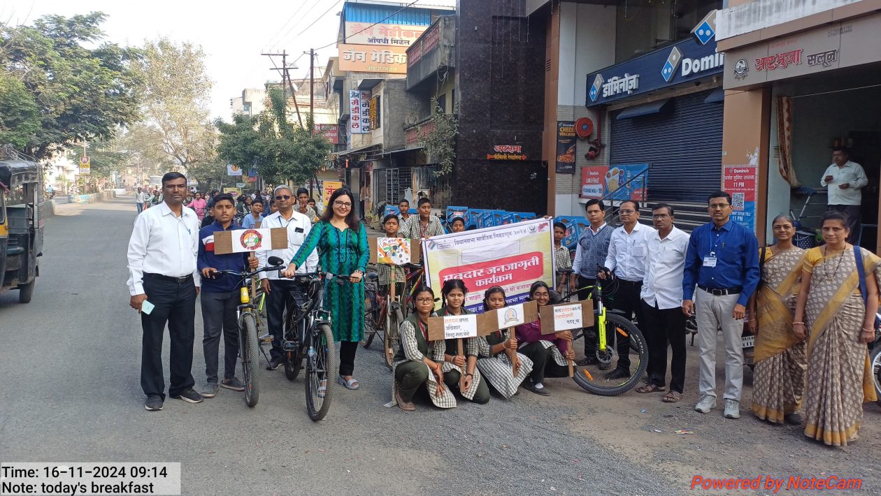 20 नोव्हेंबर रोजी होणाऱ्या विधानसभा निवडणुकीत मतदानाची टक्केवारी वाढवून लोकशाही बळकट करण्यासाठी निवडणूक आयोगाने दिलेल्या सूचनेनुसार मतदार जनजागृती अभियानांतर्गत ही सायकल रॅली काढण्यात आली. रॅलीत महाराणा प्रताप विद्यालय व अहिल्यादेवी विद्यालयातील विद्यार्थ्यांचा सहभाग होता. सायकल रॅलीचा शुभारंभ महाराणा प्रताप विद्यालयाचे मुख्याध्यापक सुरेश शिंदे यांच्या हस्ते करण्यात आला. यावेळी स्वीप सहाय्यक अधिकारी राहूल पाटील, स्वीप सहाय्यक अधिकारी प्रमोद आठवले, स्वीपचे युथ आयकॉन शिक्षणतज्ज्ञ डॉ. जगदीश पाटील, वैभव पुराणिक, सुधाकर सपकाळे, आशीष निरखे, कोमल जोशी, वंदना ठोके यांच्यासह शिक्षकांची उपस्थिती होती. ही सायकल रॅली महाराणा प्रताप विद्यालय, आनंद नगर, पंचशील नगर, गंगाराम प्लॉट, आठवडे बाजार, न्यू एरिया वार्ड, अहिल्यादेवी कन्या विद्यालय, वाल्मीक चौक, जामनेर रोडमार्गे महाराणा प्रताप विद्यालयापर्यंत काढण्यात आली. रॅलीत तहसीलदार श्रीमती नीता लबडे यांच्यासह शिक्षक आणि सुमारे शंभर सायकलस्वार विद्यार्थी सहभागी झाले होते. मतदारांना शंभर टक्के मतदान करण्याचे आवाहन रॅलीदरम्यान करण्यात आले. त्यानंतर महाराणा प्रताप विद्यालयात आयोजित समारोपीय कार्यक्रमात स्वीप मोहिमेविषयी डॉ. जगदीश पाटील यांनी माहिती दिली. यावेळी तहसीलदार श्रीमती नीता लबडे म्हणाल्या की, रॅलीत सहभागी विद्यार्थ्यांनी आपल्या परिचयातील सर्व व्यक्तींना आग्रहाने मतदान करण्यासाठी प्रोत्साहित करावे. लोकशाहीत आपल्या मतदानाचा हक्क बजावण्यासाठी सर्वांनी तत्पर राहावे, असे आवाहन देखील त्यांनी केले. तसेच मतदार जनजागृती मोहिमेत सहभाग नोंदवल्याबद्दल त्यांनी विद्यार्थी व शिक्षकांचे आभार मानले. सायकल रॅली यशस्वीतेसाठी स्वीप नोडल अधिकारी गटशिक्षणाधिकारी किशोर वायकोळे, राहूल पाटील, प्रमोद आठवले, डॉ. जगदीश पाटील यांच्यासह महाराणा प्रताप विद्यालय व अहिल्यादेवी कन्या विद्यालयातील शिक्षकांनी परिश्रम घेतले.