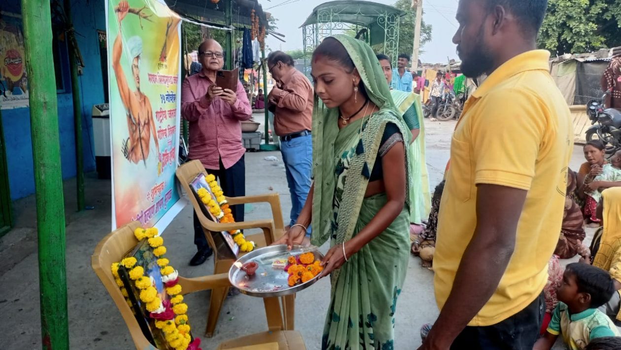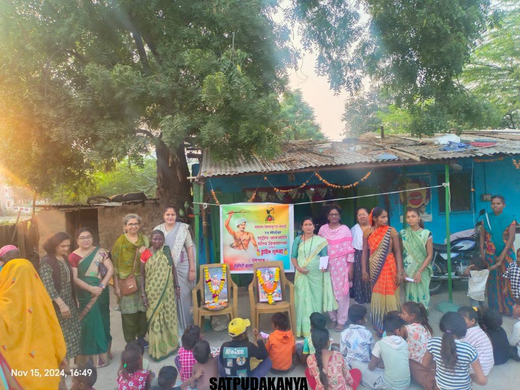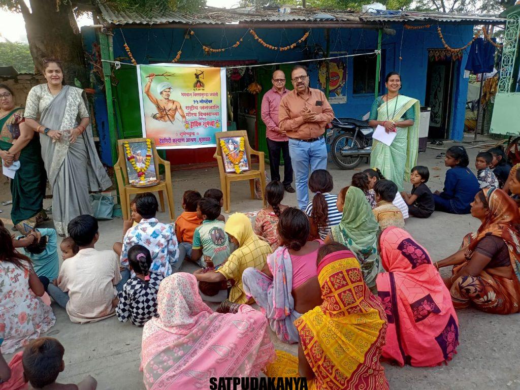 स्थानिक तापीनदी नजीक असलेल्या एकलव्य भिल्ल वस्ती येथे जननायक बिरसा मुंडा यांच्या प्रतिमेचे पूजन करून उपस्थित वनवासी महिलेच्या हस्ते माल्यार्पण व पूजन करून विनम्र अभिवादन करण्यात आले . यावेळी कार्यक्रमाचे प्रमुख मान्यवर तथा कल्याण आश्रमचे प्रांत उपाध्यक्ष डॉ किशोर मोरे यांनी बिरसा मुंडा यांनी आदिवासी जनजाती समाजासाठी दिलेल्या हक्कांच्या लढ्याची माहिती भगवान बिरसा मुंडा यांच्या चरित्रातुन सांगितली .तर जिल्हा महिला सहप्रमुख ऍड. जास्वंदी भंडारी यांनी बिरसा मुंडा यांचे जीवनचरित्रातील ईश्वर म्हणजेच सिंगबोगा एक आहे, गोसेवा करा , सर्व प्राण्यांवर प्रेम करा , व्यसन करू नका, अशुद्ध अन्न खाऊ नका , साधे रहा ,स्वच्छता पाळा घराचे अंगणात तुळशी लावा , मोठयांचा आदर करा वाईट संगत धरू नका , पर धर्मापेक्षा स्व धर्म चांगला , आपली संस्कृती , धर्म , आणि पूर्वज यांचे प्रति अतूट श्रद्धा ठेवा , धर्म संस्कृती समाज यांना विसरू नका यामुळे समाजाची ओळख संपते , एकजूट रहा एकमेकांत भांडू नका , आठवड्यातून एकदा गुरुवारी सिंगबोगा म्हणजे ईश्वराची पूजा करा आदी बिरसा मुंडा यांचे उपदेश बद्दल सविस्तर माहिती सांगितली .