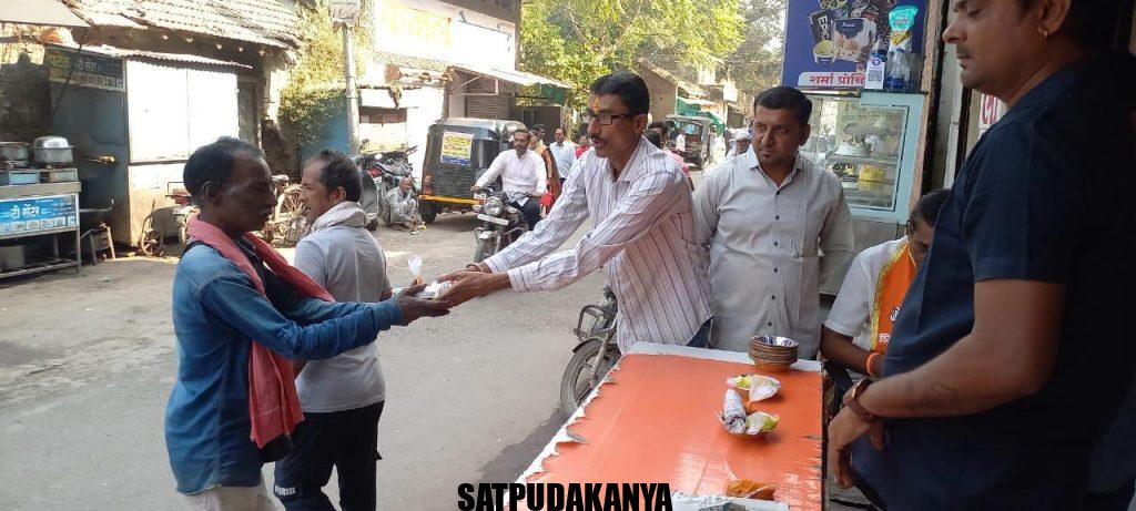 स्मृती दिनानिमित्त येथील कट्टर शिवसैनिक उमाकांत शर्मा (नमा ) यांनी आपल्या शिवभोजन केंद्र मार्फत आज गरिबांना (निःशुल्क )अन्नदान करण्यात आले .