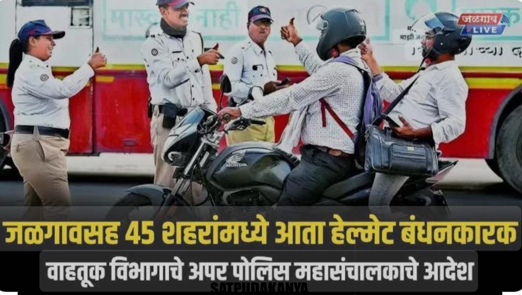 जळगाव – विना हेल्मेट दुचाकीस्वार व सह प्रवासी यांचे अपघात व त्यात मृत्युमुखी तसेच जखमी होणाऱ्यांच्या संख्येत मोठ्या प्रमाणावर वाढ होत असल्यामुळे राज्यातील जळगावसह प्रमुख ४५ शहरांमध्ये दुचाकीस्वारांसह पाठीमागे बसणाऱ्या सहप्रवाशालाही हेल्मेट बंधनकारक करण्यात आले आहे. याबाबतचे आदेश वाहतूक विभागाचे अपर पोलिस महासंचालक अरविंद साळवे यांनी दिले आहेत.