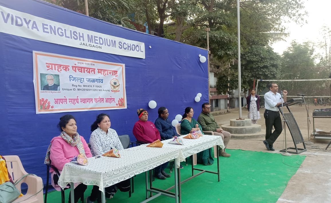 २४ डिसेंबर रोजी दर वर्षी राष्ट्रीय ग्राहक दिन साजरा करण्यात येतो. राष्ट्रीय ग्राहक दिनाचे औचित्य साधून, जळगाव शाखेच्या वतीने २१ डिसेंबर रोजी विद्या इंग्लिश मिडीयम स्कूल मध्ये विद्यार्थी ग्राहक जागृती ह्या विषयाबद्दल सचिव डॉ. नितीन धांडे यांनी विद्यार्थ्यांना मार्गदर्शन केले.