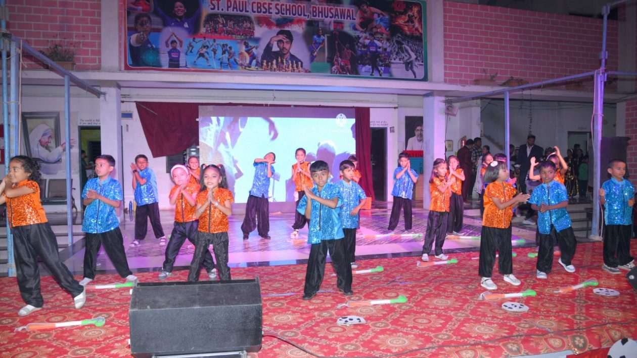 फोटो कॅप्शन – भुसावळातील सेंट पॉल स्कूलमध्ये सांस्कृतिक कार्यक्रमात नृत्य सादर करताना विद्यार्थी.