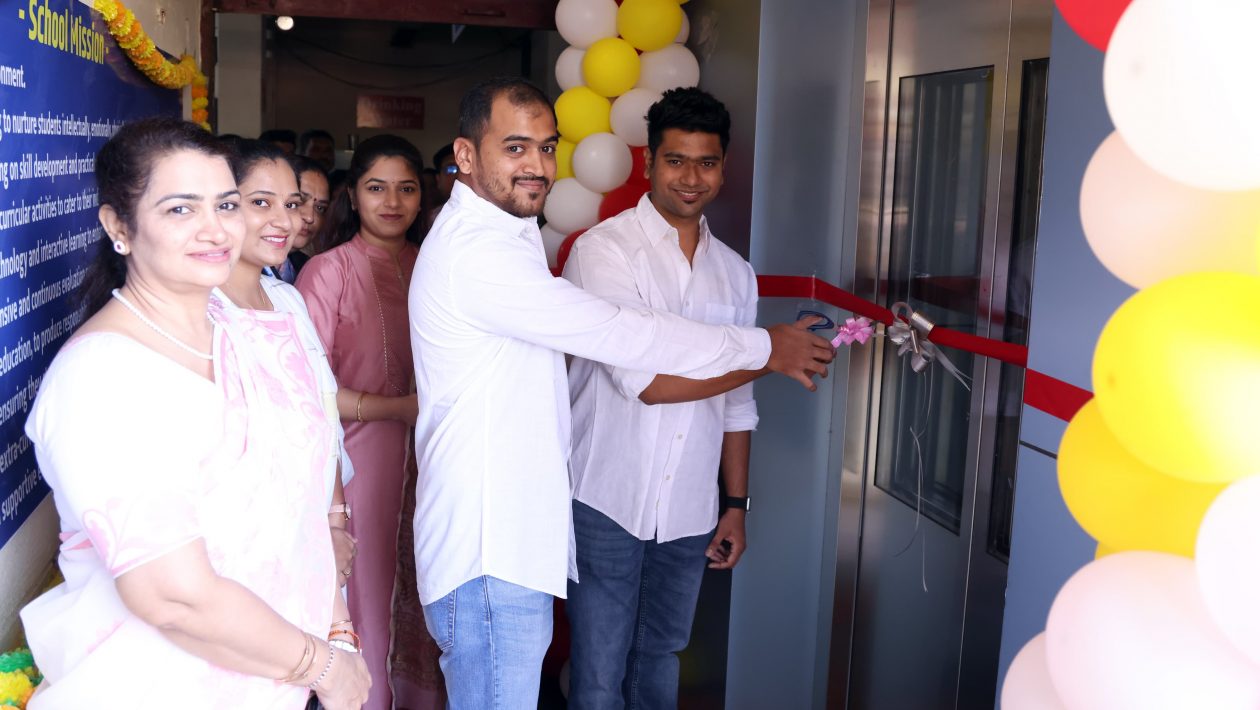 फोटो कॅप्शन – भुसावळातील ताप्ती पब्लिक स्कूलमध्ये लिफ्टचे उद्घाटन करताना माजी विद्यार्थी यशोधन फालक सोबत प्रिन्सिपल निना कटलर व इतर.