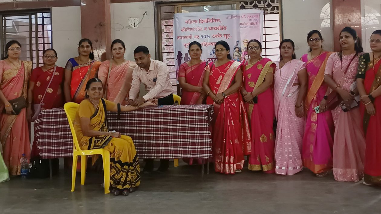 भुसावळ (प्रतिनिधी ) – 8 मार्च महिला दिनानिमित्त जय संताजी महिला मंडळभुसावळतर्फे मोफत आरोग्य महामेळावा तेली समाज मंगल कार्यालय भुसावळ येथे सकाळी 10 ते 1 वेळेतआरोग्य तपासणी शिबिराचे आयोजन करण्यात आले होते. या शिबिरात गोल्डन अवर हॉस्पिटलचे संचालक डॉ शंतनू साहू, गुरुकृपा डेंटल क्लिनिकचे संचालक रूट कॅनाल स्पेशालिस्ट डॉ राकेश गोगिया, यांनी 145 पेशंटची तपासणी केली..या वेळी चौधरी लॅब चे संचालक मनोज चौधरी यांनी Hb,ब्लड ग्रुप, ब्लड शुगर तपासणी मोफत तसेच थायराईड व कोलेस्टेरॉल तपासणी 50% दरात उपलब्ध करून दिली. त्यासोबत BONE MINERAL DENSITY(BMD) तपासणी मोफत उपलब्ध करून देण्यात आली होती. या दोन्ही सुविधांचा लाभ 120 रुग्णांनी घेतला.