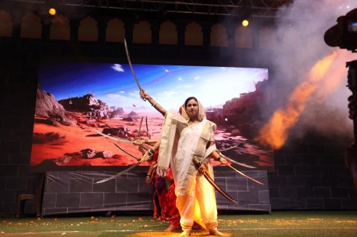 प्रतिष्ठा महिला मंडळाच्या अध्यक्षा रजनी सावकारे यांच्या संकल्पनेतून या नाटिकेचे सादरीकरण करण्यात आले. यात प्रत्यक्ष घोड्यांचाही वापर करण्यात आला. संगीत प्रकाश