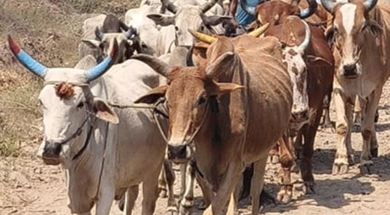 पालकडून लालमाती खिरोदा प्र.रावेरमार्गे रसलपूर मार्गाने गुप्तपणे गोवंश कत्तलीसाठी घेऊन जात असल्याची गुप्त माहिती रावेर पोलीस निरीक्षक डॉ.विशाल जयस्वाल यांना मिळाल्यानंतर त्यांनी पथकाला निर्देश दिले. सहाय्यक पोलीस निरीक्षक अंकुश जाधव, पोलीस उपनिरीक्षक घनश्याम तांबे यांच्या पथकाने मंगळवारी दुपारी दीड वाजेच्या धाव घेत रसलपूर जवळील आदिवासी आश्रमशाळेजवळ दोन इसम रस्त्यावरून गोवंश घेऊन जाताना आढळल्यानंतर त्यांना हटकताच ते पसार झाले. पोलिसांनी तीन लाख 70 हजार रुपये किंमतीचे 14 बैल जातीचे गोवंश जप्त करून रावेर येथील द्वारकाधिश गोशाळेत संगोपनासाठी रवाना केले. याबाबत रावेर पोलीस ठाण्यात पोलीस कॉन्स्टेबल राहुल परदेशी यांनी दिलेल्या फिर्यादीवरून हुसेन अब्दुल रहेमान तडवी, कादीर अब्दुल रहेमान तडवी (पाल) यांच्याविरोधात गुन्हा दाखल केला. तपास पोलीस उपनिरीक्षक घनश्याम तांबे करीत आहेत.