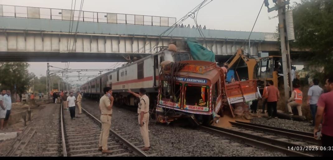 भुसावळ (प्रतिनिधी ) – आज १४/०३/२०२५ रोजी पहाटे ४:३२ वाजता बोदवड रेल्वे स्थानकावर अमरावती एक्सप्रेस क्रमांक १२१११ एका ट्रकला धडकल्याने एक असामान्य घटना घडली. बूम बॅरियर ओलांडताना गव्हाने भरलेला एक ट्रक रेल्वे ट्रॅकवर आला, ज्यामुळे ट्रक ट्रेनला समोरासमोर धडकला. ही घटना किमी ४७४/३४-३६ येथे घडली.