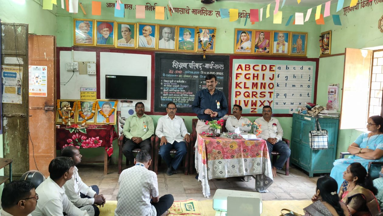 फोटो ओळी – वाघळूद जि.प. शाळेतील केंद्रस्तरीय शिक्षण परिषदेत बोलताना डॉ. जगदीश पाटील सोबत केंद्रप्रमुख गिरीश सपकाळे, मुख्याध्यापक अमितकुमार पाटील, छोटू मनुरे, वसंत सोनवणे आदी.