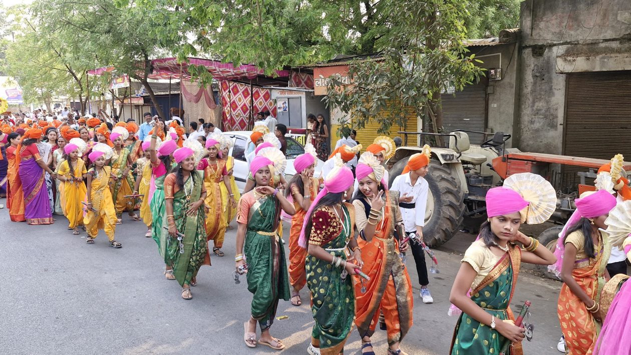 बळीराजा स्मारकापासून सुरुवात झालेल्या या ग्रंथीदिंडीत कानबाई, तगतराव, विठोबाची वारी, ढोलताशांचा गजर, लेझीमच्या नृत्याने रसिकांचे लक्ष वेधून घेतले होते. आथानी कैरी, तथानी कैरी…कैरी झोका खाय वं… अशा अहिराणी आणि आदिवासी गाण्यांवर रसिकांनी ठेका धरत दिंडीची शोभा वाढविली.