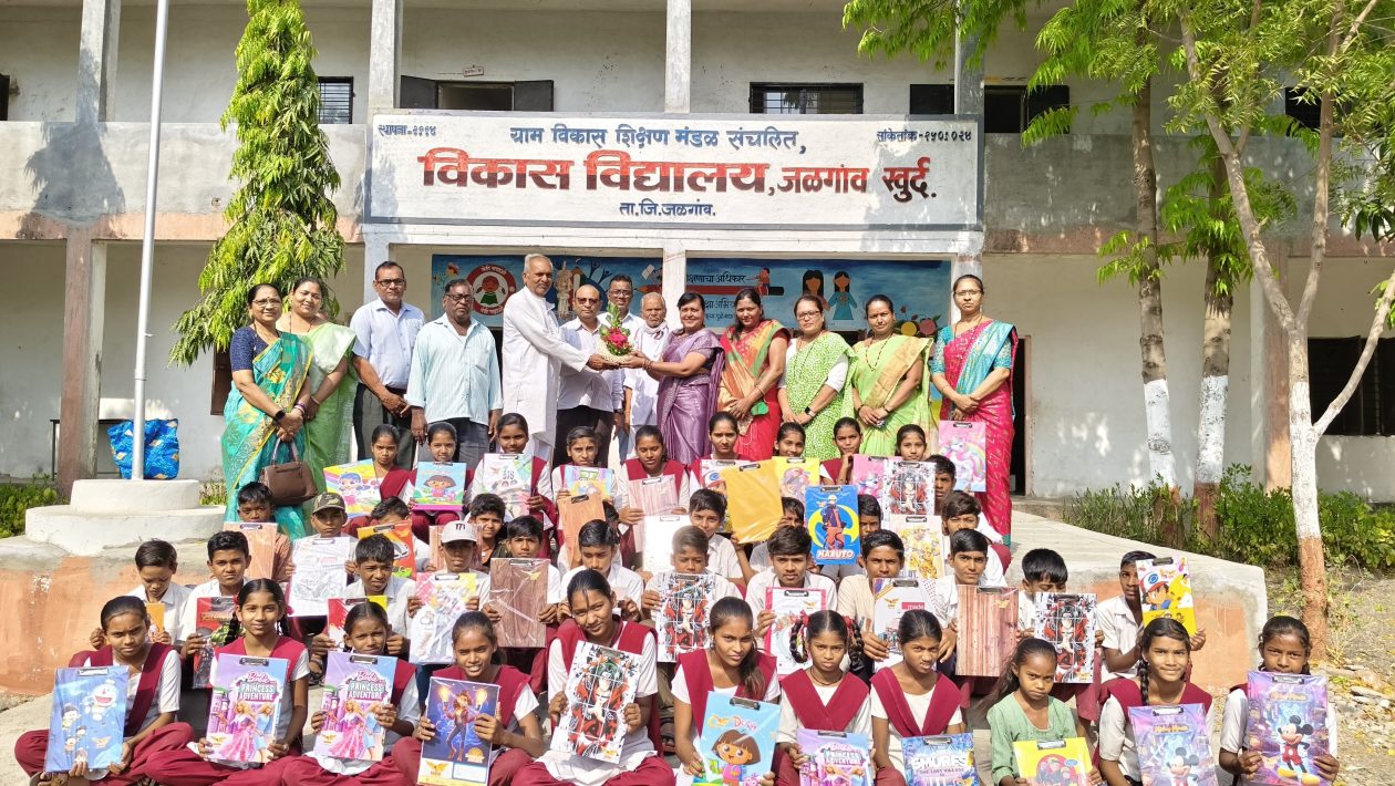 आपल्या मुलाचा आगळावेगळा वाढदिवस साजरा केला. विकास विद्यालय जळगाव खुर्द येथे शाळेतील मुलांना शालेय साहित्याचे आणि खाऊचे वाटप केले. मुलांच्या परीक्षा सुरू असताना त्यांना काय आवश्यक आहे हे जाणून घेऊन त्यांच्यासाठी लेटर पॅड ची देखील व्यवस्था करून दिली.