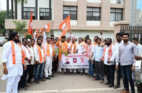 नंदूरबार (भुसावळ ) – नंदुरबार शहरातील विविध भागांतील रस्त्यांची अतोनात दुर्दशा झाल्याने नागरिकांना समस्यांना सामोरे जावे लागत आहे या उदभवलेल्या समस्यांकडे नगर परिषद प्रशासनाने दुर्लक्ष केले असल्याने पालिका प्रशासनाने लक्ष केंद्रित करण्यासाठी शिवसेना उद्धव बाळासाहेब ठाकरे या पक्षातर्फे प्रतिकात्मक आंदोलन करण्यात आले . यानिमित्त महानगर प्रमुख पंडीत माळी यांच्या संकल्पनेतून विविध प्रभागात रस्त्यातील खड्यांत झाडे लावणे सप्ताह साजरा करण्यात आला . या अनोख्या आंदोलनाची सांगता शिवसेना उपनेते, नंदूरबार जिल्हा संपर्कप्रमुख गुलाबराव वाघ यांच्या नेतृत्वात नगरपरिषद प्रशासन यांची प्रतिकात्मक प्रेतयात्रा काढून निषेध करण्यात आला,