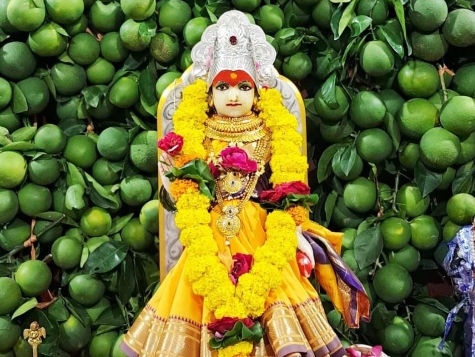 विशेष आकर्षण ठरले ते श्रीक्षेत्र कोथळी येथील नितीन रघुनाथ चौधरी यांच्या शेतातील मोसंबीपासून सजवलेली मुक्ताई माऊलींची आकर्षक आरास.