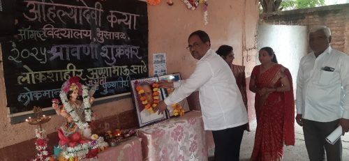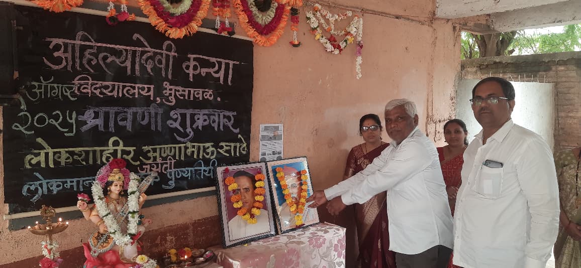येथील अहिल्यादेवी कन्या विद्यालय येथे एक ऑगस्ट रोजी अण्णासाहेब साठे यांची जयंती व लोकमान्य टिळक यांची पुण्यतिथी मोठ्या उत्साहात साजरी करण्यात आली .सर्वप्रथम शाळेचे मुख्याध्यापिका सौ मानसी कुलकर्णी पर्यवेक्षक संजीव पाटील व ज्येष्ठ शिक्षक नाना पाटील,श्री अतुल जाधव यांच्या हस्ते दीप प्रज्वलन व सरस्वती पूजन करून अण्णासाहेब साठे व लोकमान्य टिळक यांच्या प्रतिमे ला मार्ल्यापण करण्यात आले .यानंतर विद्यार्थिनींनी दोन्ही नेत्यांवरआपली मनोगत सांगितले त्यानंतर शाळेतील शिक्षक वत्सला वानखेडे , पल्लवी पाटील,अतुल जाधव, सौ आशा पाटील यांनीही विद्यार्थ्यांना दोन्ही महापुरुषांविषयी माहिती देऊन मार्गदर्शन केले .शाळेचे मुख्याध्यापिका मानसी कुलकर्णी यांनी लोकमान्य टिळक व अण्णाभाऊ साठे यांच्या जीवनाविषयी महत्त्व सांगितले .