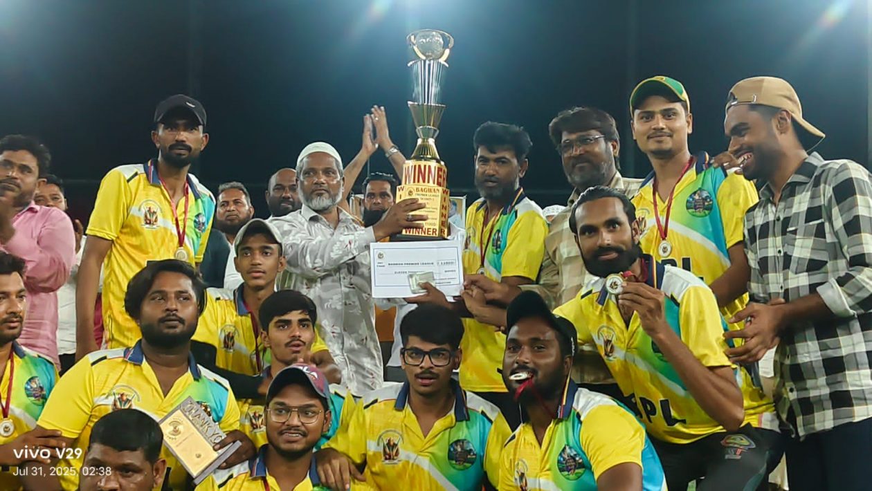 भुसावळ (प्रतिनिधी ) :-बागवान जमात सातारा व बागवान युवा फाउंडेशन यांच्या संयुक्त विद्यमाने हाजी जाकीर बागवान यांनी टेनिस बॉल क्रिकेट संघटनेच्या सहकार्याने आयोजित साकेगाव महामार्गावरील टर्फ येथे डे -नाईट टेनिस बॉल क्रिकेट अंतिम सामना फैजान सीसीने अबूबकर सीसी संघावर १४ धावांनी मात करत पटकाविले. स्पर्धेत बागवान जमातच्या बारा संघांनी सहभाग घेतला होता. स्पर्धेचे आयोजन युट्युब वर लाईव्ह करण्यात आले होते. साखळी पद्धतीने झालेल्या या स्पर्धेत अंतिम सामना फैजांन सीसी व अबूबकर सीसी यांच्यात झाला हा सामना ‘फैजान’सीसीने १४ धावांनी जिंकत बागवान प्रीमियर लीग सीजन -२ वर आपले नाव कोरले अंतिम सामन्यात मॅन ऑफ द मॅच- उमेर बागवान, बेस्ट बॅट्समन- सुफियान बागवान, मॅन ऑफ द सिरीज- बबलू बागवान, बेस्ट बाॅलर साकीब बागवान बागवान यांना देण्यात आले. स्पर्धेत अंतिम सामनारा जिंकणाऱ्या फैजान सीसी संघाला ११ हजार व चषक सईद हाजी बशीर बागवान यांच्या हस्ते देण्यात आले तर उपविजेता अबूबकर संघाला ५ हजार रोख मुश्ताक हाजी मुसा बागवान यांच्या हस्ते देण्यात आले. स्पर्धेचे आयोजन हाजी जाकिर बागवान, साजिद बागवान, नदीम बागवान यांनी केले होते.