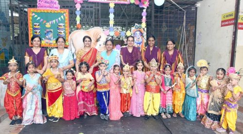फोटो कॅप्शन – भुसावळातील ताप्ती पब्लिक सीबीएसई इंग्लिश मीडियम स्कूल मध्ये कृष्णा जन्माष्टमी निमित्त राधाकृष्णाच्या वेशभूषात आलेले विद्यार्थी.