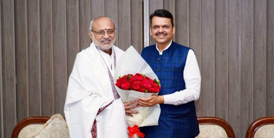 कोल्हापूर दौऱ्यावरून परत आल्यानंतर मुख्यमंत्री देवेंद्र फडणवीस यांनी रविवारी (१७ ऑगस्ट) मुंबईतील राजभवन येथे जावून महाराष्ट्राचे राज्यपाल सी.पी. राधाकृष्णन यांची भेट घेतली. या भेटीच्या वेळी मुख्यमंत्री फडणवीस यांनी राष्ट्रीय लोकशाही आघाडीच्या (NDA) वतीने राधाकृष्णन यांची भारताच्या उपराष्ट्रपतीपदासाठी उमेदवारी जाहीर झाल्याबद्दल त्यांचे मनःपूर्वक अभिनंदन केले.