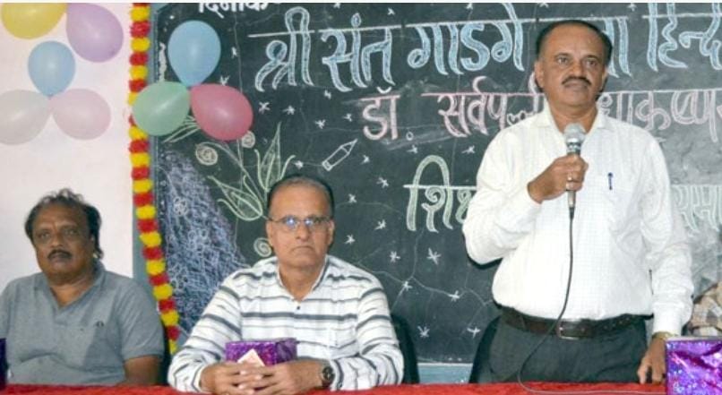 भुसावळ (प्रतिनिधी) – श्री संत गाडगेबाबा हिंदी महाविद्यालयात डॉ. सर्वपल्ली राधाकृष्णन यांचा जन्मदिवस 5 सप्टेंबर हा शिक्षक दिवस म्हणून साजरा करण्यात आला. प्राचार्य डॉ. रमेश जोशी यांनी सरस्वती मातेचे पूजन करून दीपप्रज्वलन केले. तसेच डॉ. सर्वपल्ली राधाकृष्णन यांच्या प्रतिमेला पुष्पहार अर्पण करून विद्यार्थ्यांना संबोधित करतांना सांगितले की, प्रत्येक विद्यार्थ्याच्या जीवनात शिक्षकाचे अनन्य साधारण असे महत्व असते. विद्यार्थ्याचे सर्वांग सुंदर जीवन घडविण्याचे महान कार्य शिक्षकच करू शकतो. सरांनी आचार्य चाणक्य यांचे उदाहरण देऊन शिक्षकाची क्षमता किती असते हे पटवून दिले.