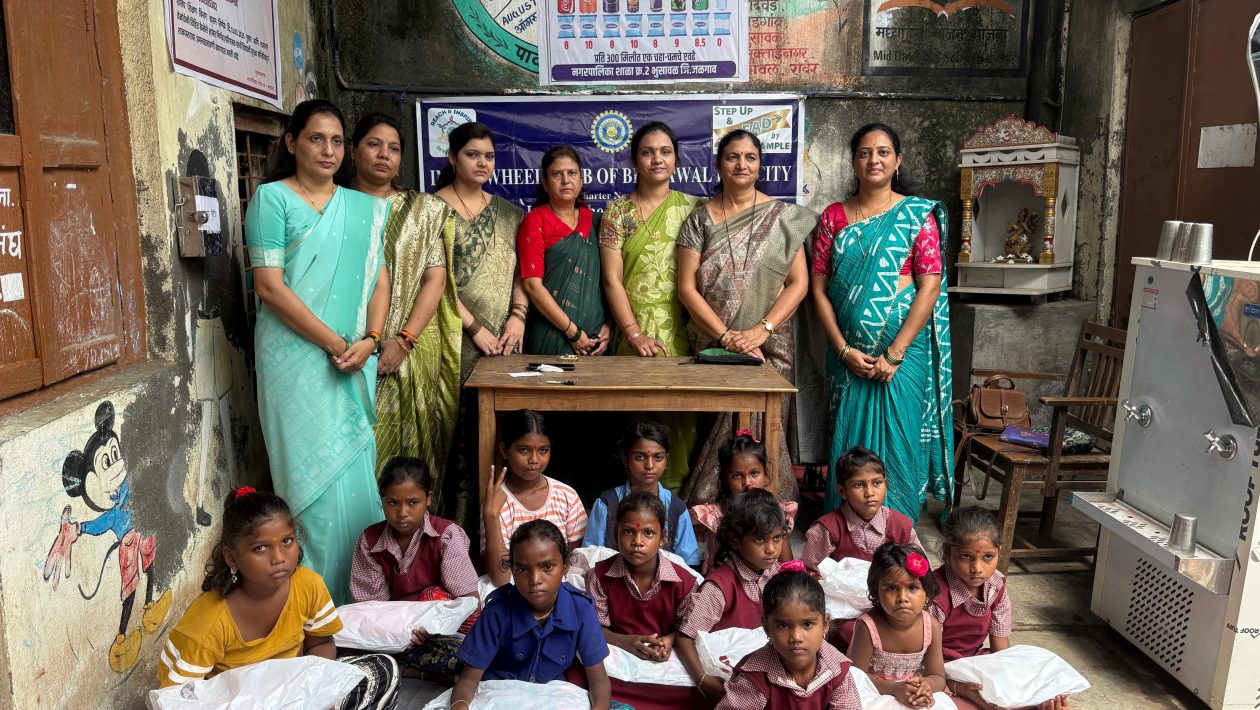 भुसावळ (प्रतिनिधी ) – नवरात्री उत्सव निमित्त भुसावळ येथील इनरव्हील क्लब ऑफ भुसावळ रेल सिटी यांनी दत्तक घेतलेल्या नगरपालिका शाळा क्रमांक दोन मधील कुमारीकांचे विधिवत पूजन केले. या शाळेत सर्व वीट भट्टी कामगारांचे मुले शिक्षण घेतात. तेथील सर्व मुलींना आणि मुलांना सुद्धा खालील प्रमाणे भेटवस्तू दिल्या. सुरुवातीला तेथील मुलींचे पूजन करण्यात आले आणि त्यांना फ्रॉक, सफरचंद, राजगिऱ्याचे लाडू,चिप्स, शृंगार आणि हेअर पिन सप्रेम भेट देण्यात आल्या. सर्व मुलं मुली आणि शिक्षकांना क्लब तर्फे अल्पोपहार देण्यात आला.