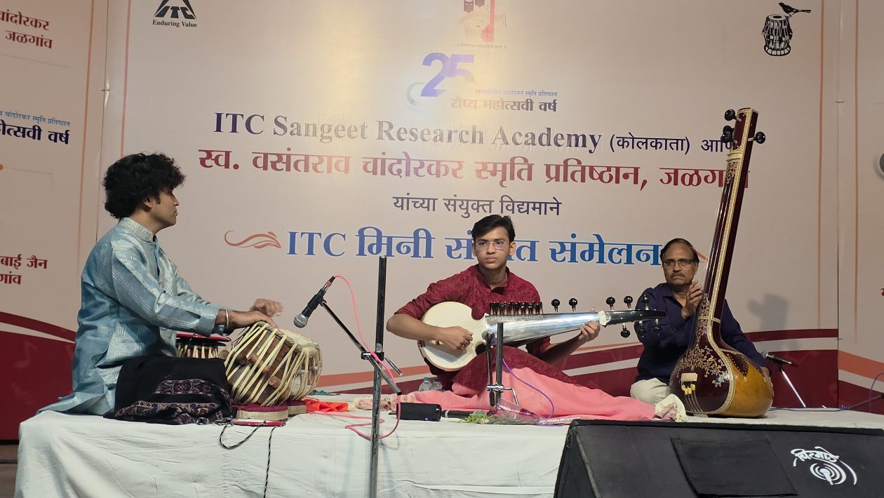जळगाव (प्रतिनिधी ) – स्व. वसंतराव चांदोरकर स्मृती प्रतिष्ठानच्या रौप्य महोत्सवी वर्षा निमित्ताने आयटीसी संगीत रिसर्च अकादमीच्या संयुक्त विद्यमाने दोन दिवसीय संगीत महोत्सवाचे आयोजन भैय्यासाहेब गंधे सभागृहात करण्यात आले आहे. या दोन दिवसात अकादमीचे दोन स्कॉलर आणि दोन प्रतीथ यश कलावंतांचा सहभाग आहे.