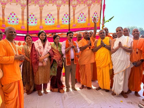बुधवारी सकाळी आठ वाजता कीर्तनाने कार्यक्रमाची सुरुवात झाली. त्यानंतर इष्ट विधी, अनंतशेष स्थापना आणि भूमिपूजन पार पडले.हरे कृष्ण, हरे राम या जयघोषाने परिसर दुमदुमला होता. असंख्य भाविकांनी श्रीकृष्णनामाचा अखंड उच्चार करून वातावरण अधिक पवित्र केले. सकाळी 11 वाजता सांस्कृतिक कार्यक्रम, भक्तिमय प्रवचन आणि महाप्रसादाचे आयोजन केले होते. यावेळी मोठ्या प्रमाणावर भाविकांची उपस्थिती कार्यक्रमास होती.