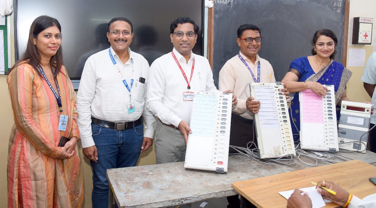 भुसावळ (प्रतिनिधी ) -भुसावळ येथील नगरपालिका निवडणूकीच्या पार्श्वभूमीवर शिक्षकांना ईव्हीएम मशीन व व्हीव्हीपॅड जोडण्या संदर्भात प्रशिक्षण देण्यात आले. यावेळी मार्गदर्शन करतांना निवडणूक निर्णय अधिकारी जितेंद्र पाटील सोबत डावीकडून रोषणा रेवतकर,संतोष विनंते,प्रिन्सिपल निना कटलर यांचेसह शिक्षक उपस्थीत होते.