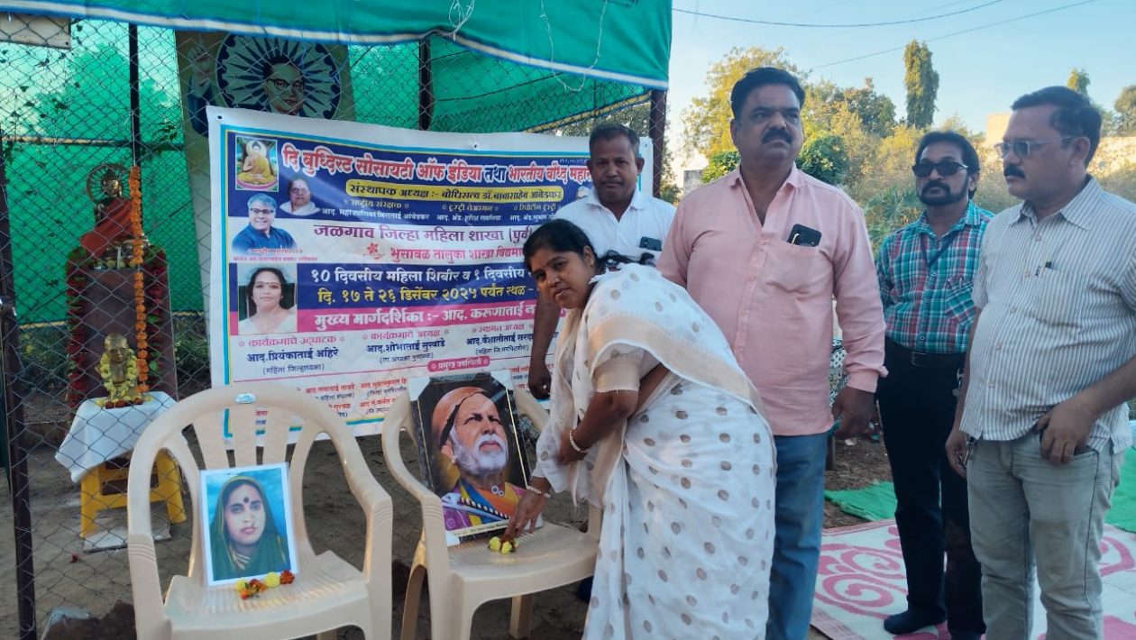 भारतीय बौद्ध महासभा महिला शाखेच्या वतीने फुलगाव येथील पुष्पलता नगर परिसरात आज दि. २० डिसेंबर २०२५ रोजी राष्ट्रीय संत गाडगे महाराज व माता भिमाई यांच्या पुण्यस्मृतीनिमित्त अभिवादन कार्यक्रमाचे आयोजन करण्यात आले होते.