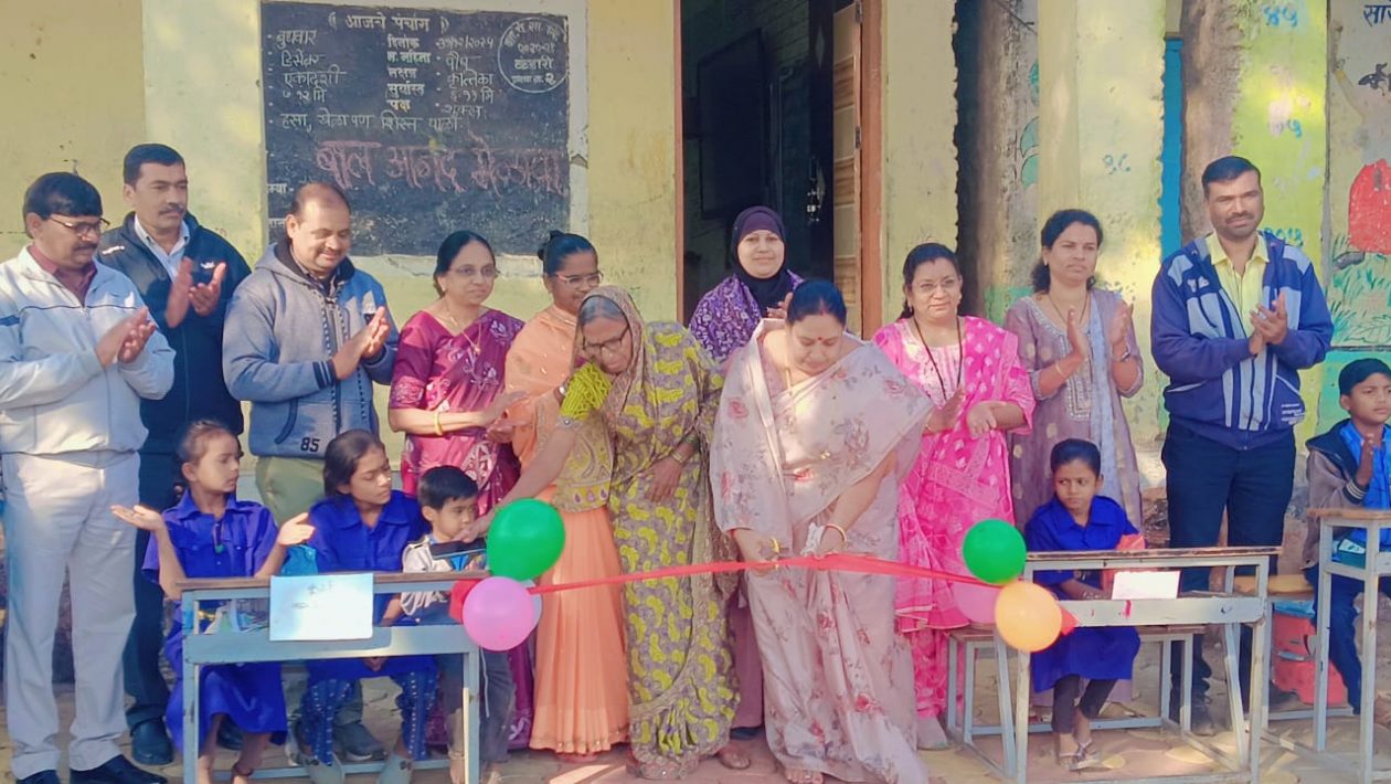 फोटो ओळी – बाल आनंद मेळाव्याचे उद्घाटन करताना पं.स. माजी सभापती मनोरमाताई पाटील सोबत सरपंच यशोदाबाई सोनवणे, ग्रा. पं. सदस्य शमाबाई पिंजारी यांच्यासह शिक्षक.