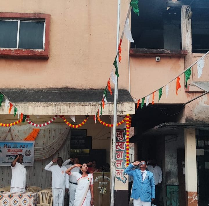 ध्वज संचालन डॉ. प्रदीप साखरे यांनी केले. कार्यक्रमाचे सूत्रसंचालन व आभार प्रदर्शन एन. एच. राठोड यांनी केले. कार्यक्रमाच्या शेवटी के. डी. चौधरी यांच्याकडून विद्यार्थ्यांना बिस्किटांचे वाटप करण्यात आले. मिठाई वाटपाने कार्यक्रमाची सांगता झाली.
