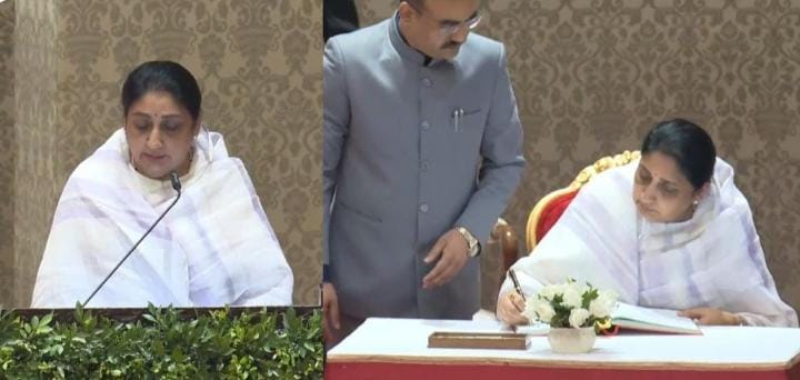 मी सुनेत्रा अजित पवार…, अखेर महाराष्ट्राच्या पहिल्या महिला उपमुख्यमंत्री सुनेत्रा पवार यांनी उपमुख्यमंत्रिपदाची शपथ घेतली आहे. आज पहिल्यांदा महाराष्ट्राला पहिल्या महिला उपमुख्यमंत्री मिळाल्या आहेत, राज्यपालांनी त्यांंना राजभवनात उपमुख्यमंत्रिपदाची शपथ दिली आहे.
