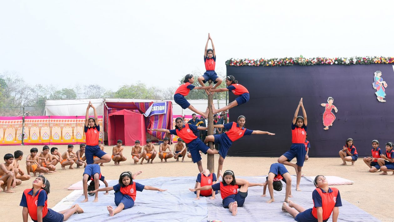 फोटो ओळ – भुसावळातील बियाणी मिलिटरी स्कूल मध्ये वार्षिक स्नेहसंमेलन प्रसंगी चित्त थरारक मल्लखांब पिरॅमीड सादर करताना विद्यार्थीनी.