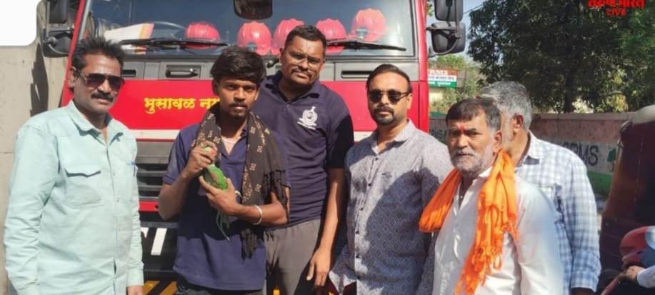 भुसावळ (प्रतिनिधी ) – शहरातील हंबर्डीकर चौक परिसरात नायलॉन मांज्यात अडकून झाडावर उलटा लटकलेल्या पोपटाची भुसावळ नगरपालिकेच्या अग्निशामक दलाने वेळेत धाव घेत सुखरूप सुटका केली. पशुप्रेमी राजेश तायडे यांच्या तत्पर प्रयत्नांमुळे पोपटाचे प्राण वाचल्याने परिसरात समाधान व्यक्त करण्यात आले.
