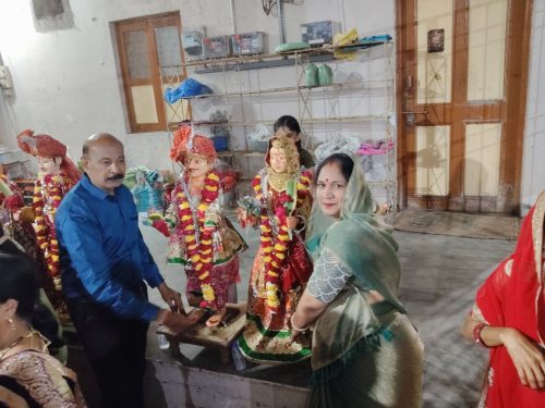 भुसावळ (प्रतिनिधी ) – गणगौर उत्सव निमित्ताने येथील राजस्थानी विप्र महिला मंडळाच्या वतीने पारंपरिक पद्धतीने पूजा-अर्चा करून उत्सव मोठ्या उत्साहात साजरा करण्यात आला. शिव-पार्वतीच्या प्रतिमेची विधिवत पूजा व आरती करण्यात आली.