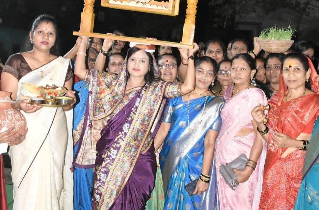 कार्यक्रमाची सुरुवात टाळांच्या गजरात आणि आनंदमय वातावरणात गौराईच्या पारंपरिक मिरवणुकीने झाली. पारंपरिक वेशभूषेत सजलेल्या महिलांनी उत्साहाने सहभाग घेतला. मिरवणुकीनंतर गौराईचे विधिवत पूजन करण्यात आले.