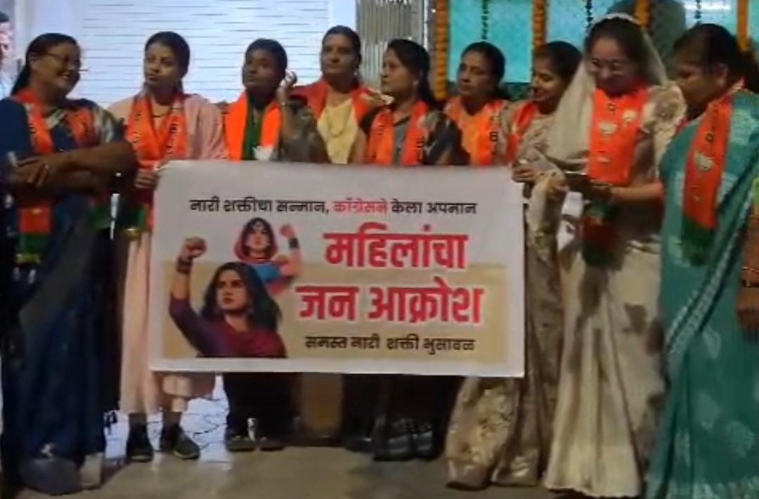 भुसावळ (प्रतिनिधी) – लोकसभा व विधानसभांमध्ये महिलांना ३३ टक्के आरक्षण देणाऱ्या नारीशक्ती वंदन अधिनियमाला विरोध केल्याच्या पार्श्वभूमीवर भुसावळात भाजप महिला पदाधिकाऱ्यांनी जनआक्रोश आंदोलन करत निषेध नोंदवला.