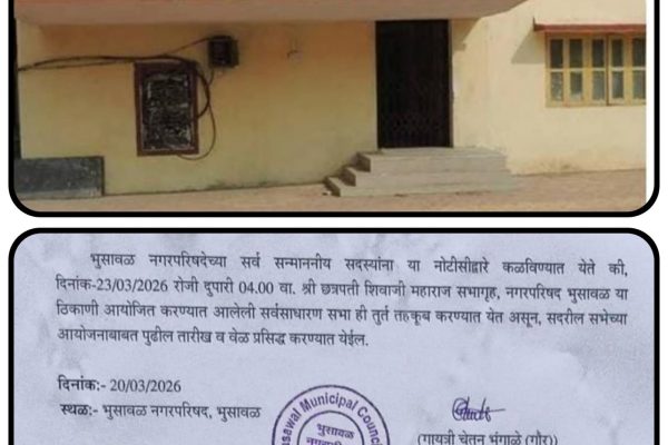 भुसावळ(प्रतिनिधी २२ मार्च ) – भुसावळ नगरपरिषदेची २३ मार्च रोजी होणारी सर्वसाधारण सभा पुन्हा एकदा तहकूब करण्यात आली आहे. नगराध्यक्षा गायत्री भंगाळे यांनी अधिकृत नोटीस …